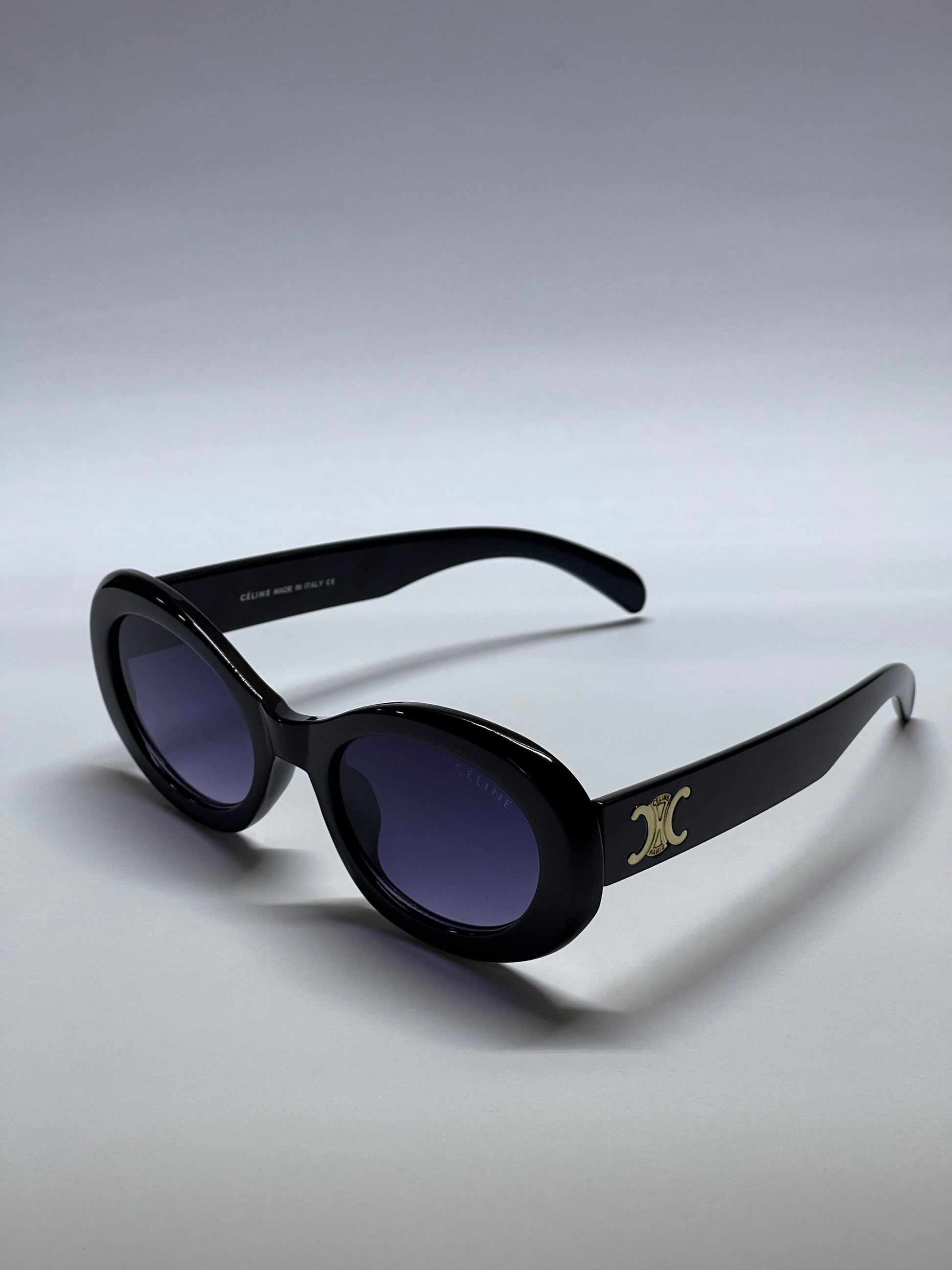 Inspirée de l’élégance parisienne, cette monture ovale noire est sublimée par l’iconique logo Triomphe doré sur les branches.
